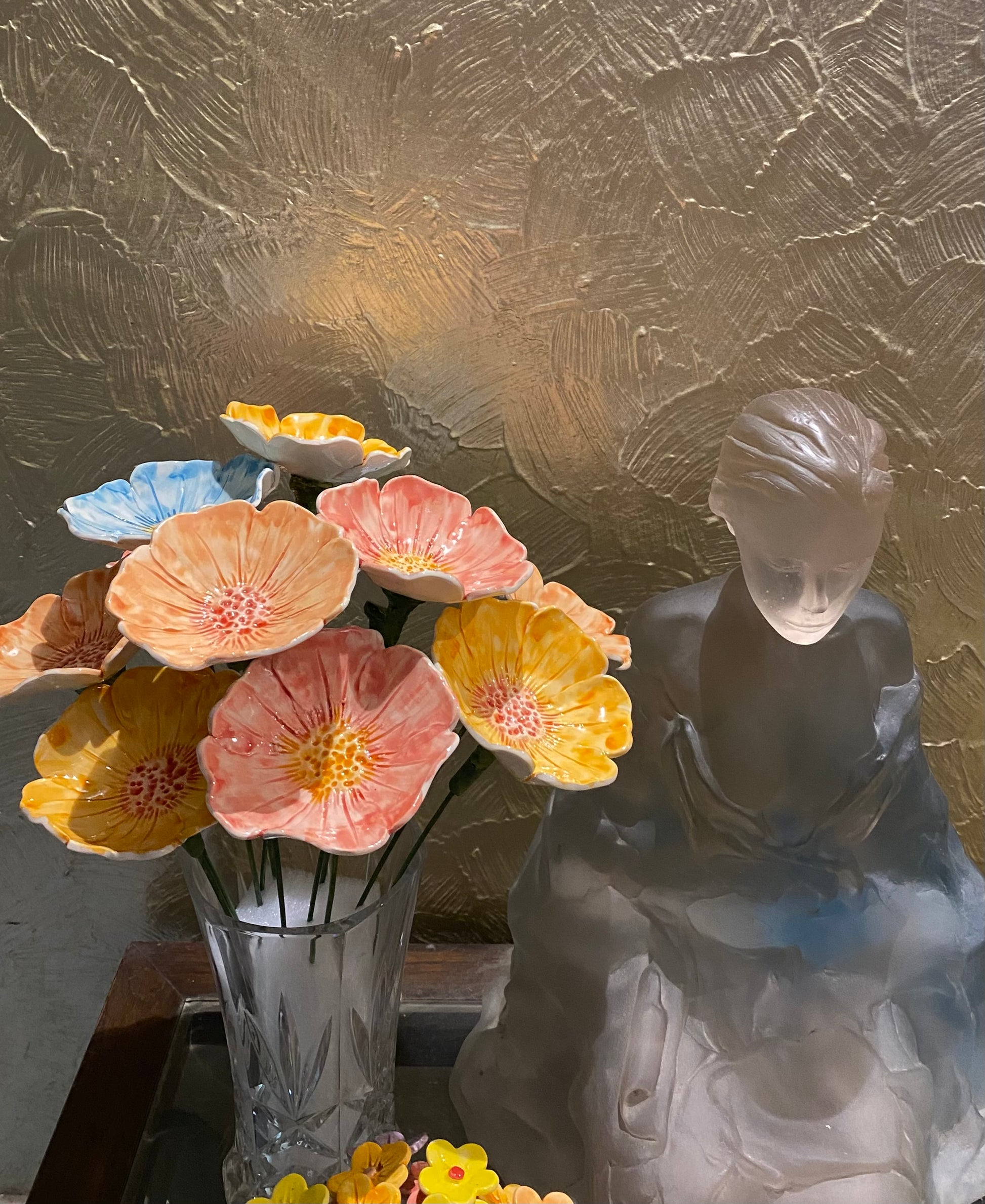Handcrafted in bright colors, this amber shaped accent flower will add a hint of understated glamour & liveliness to your table setting, mantle piece, in your verandah, or in your green plants.