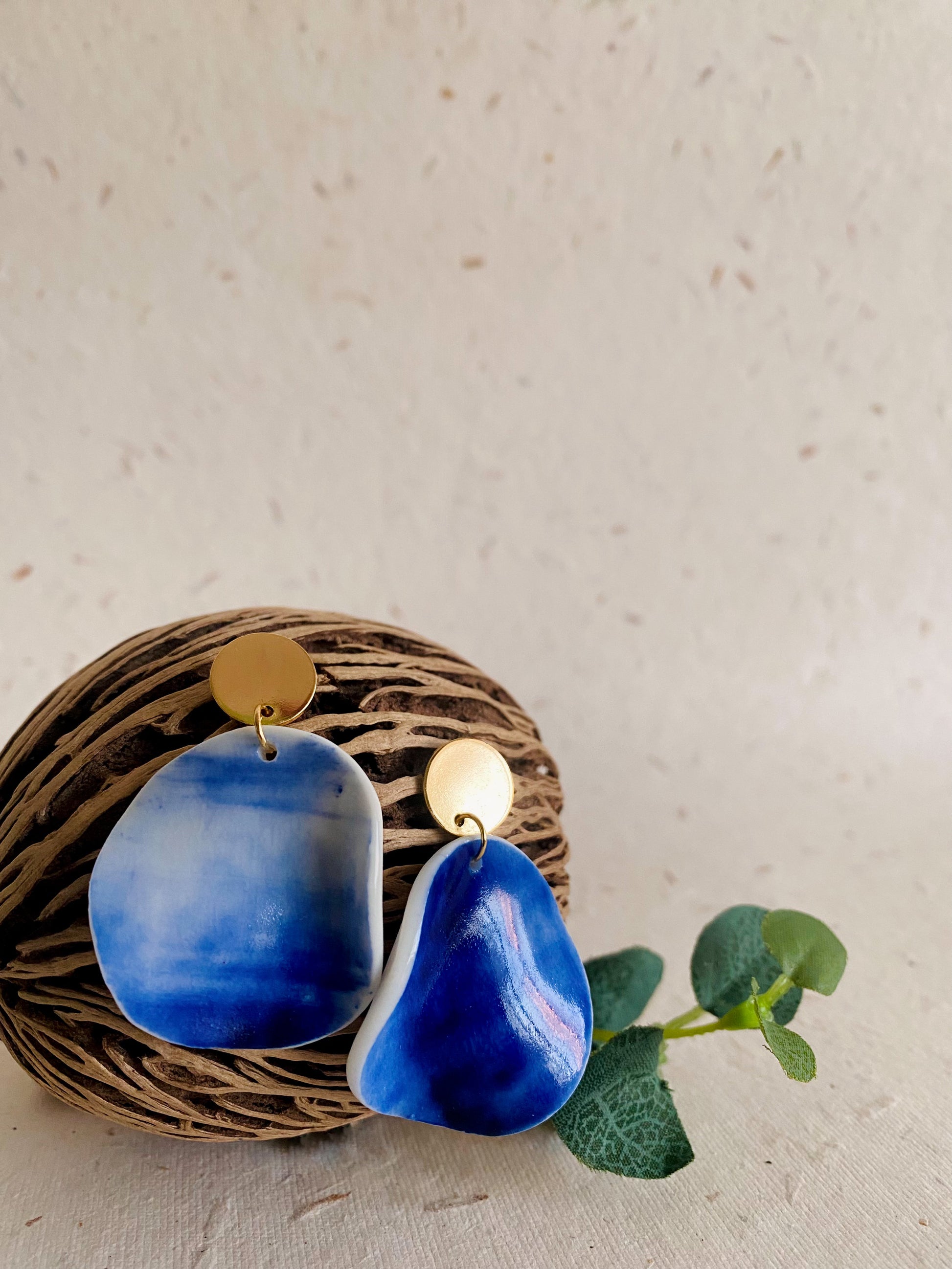 Crafted from porcelain and fired at high temperatures, these earrings showcase intricate designs, textures and vibrant colors.