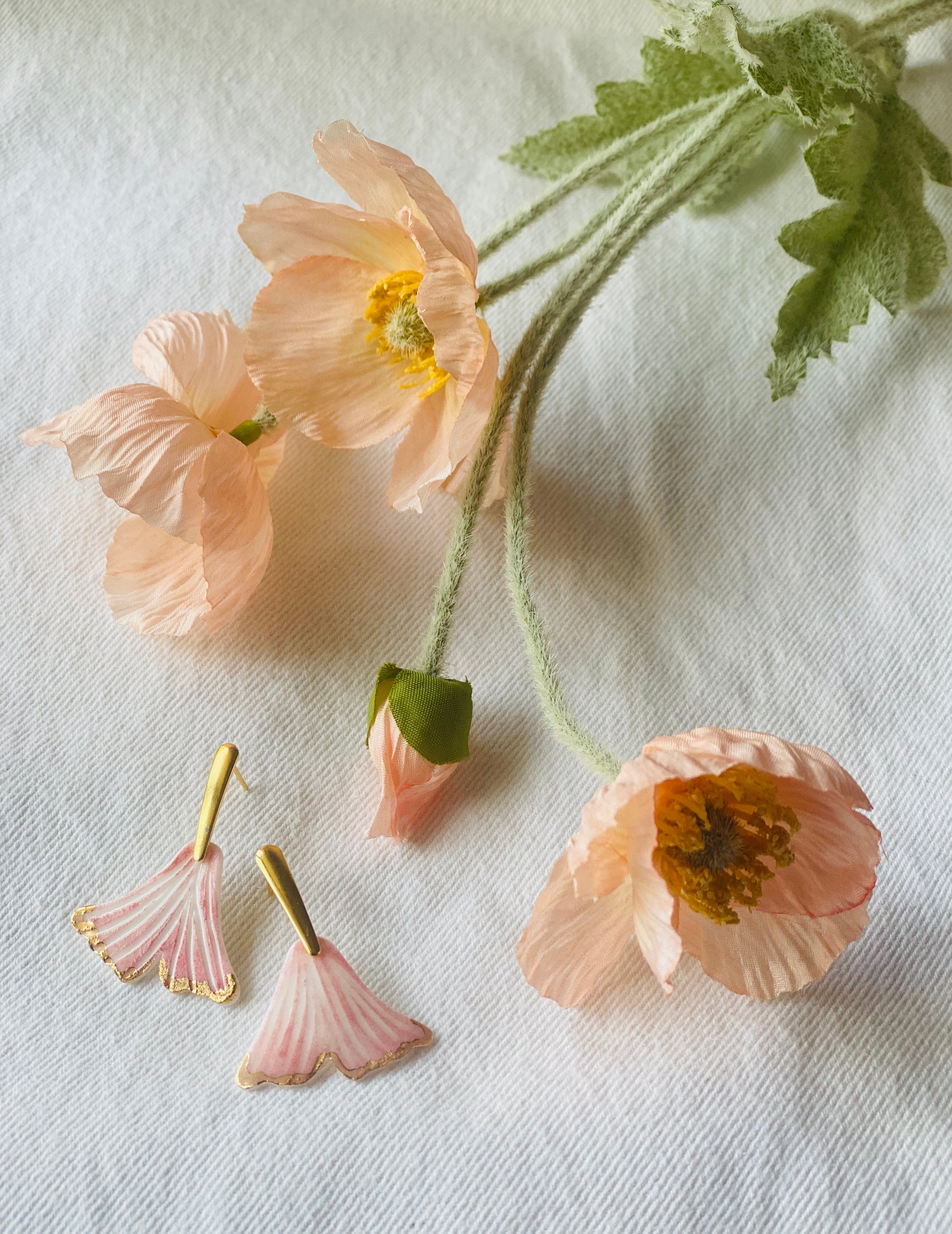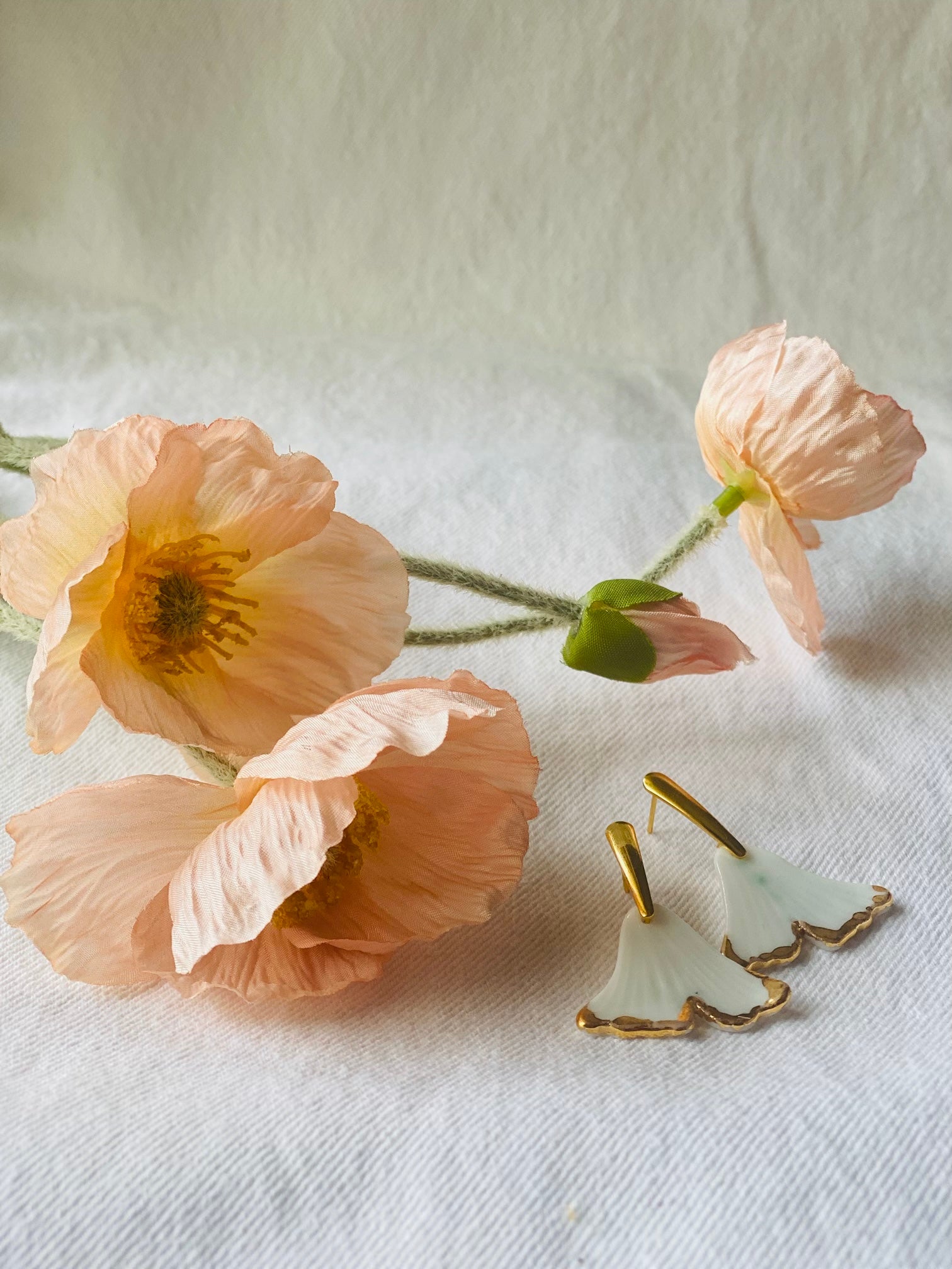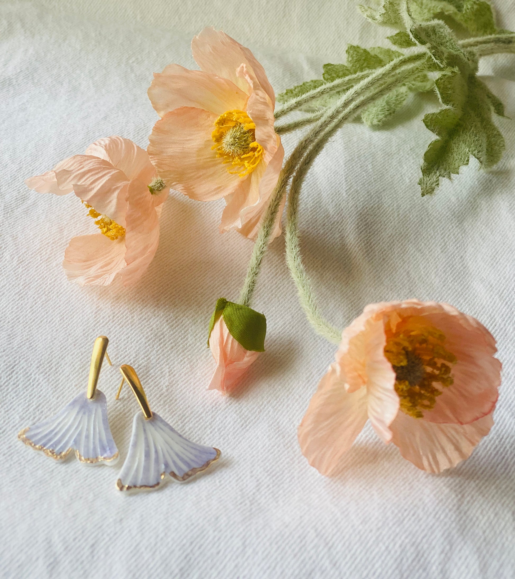 These delicate earrings are adorned with 22k gold, comes in 3 colours - White, Pink and Lavender